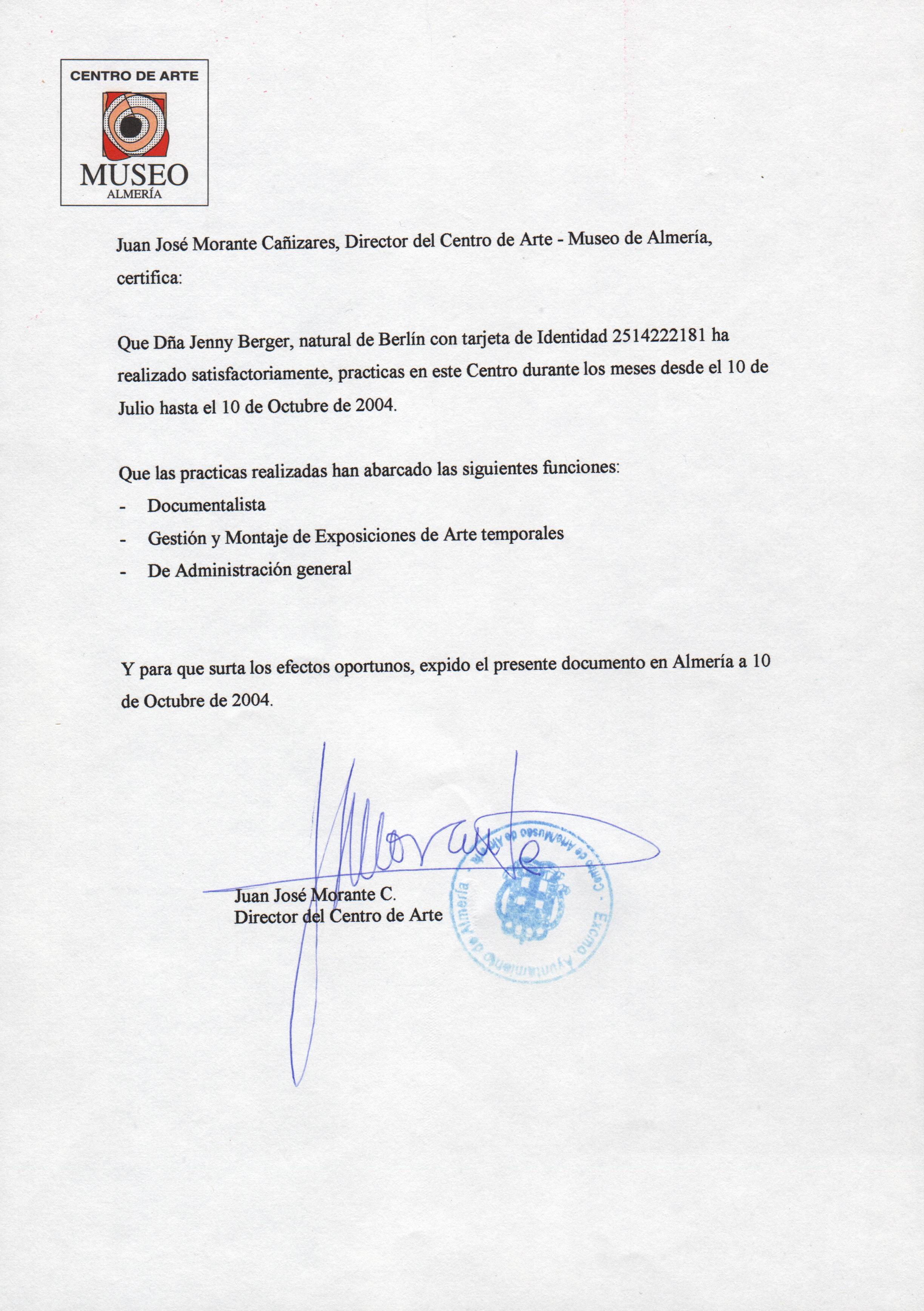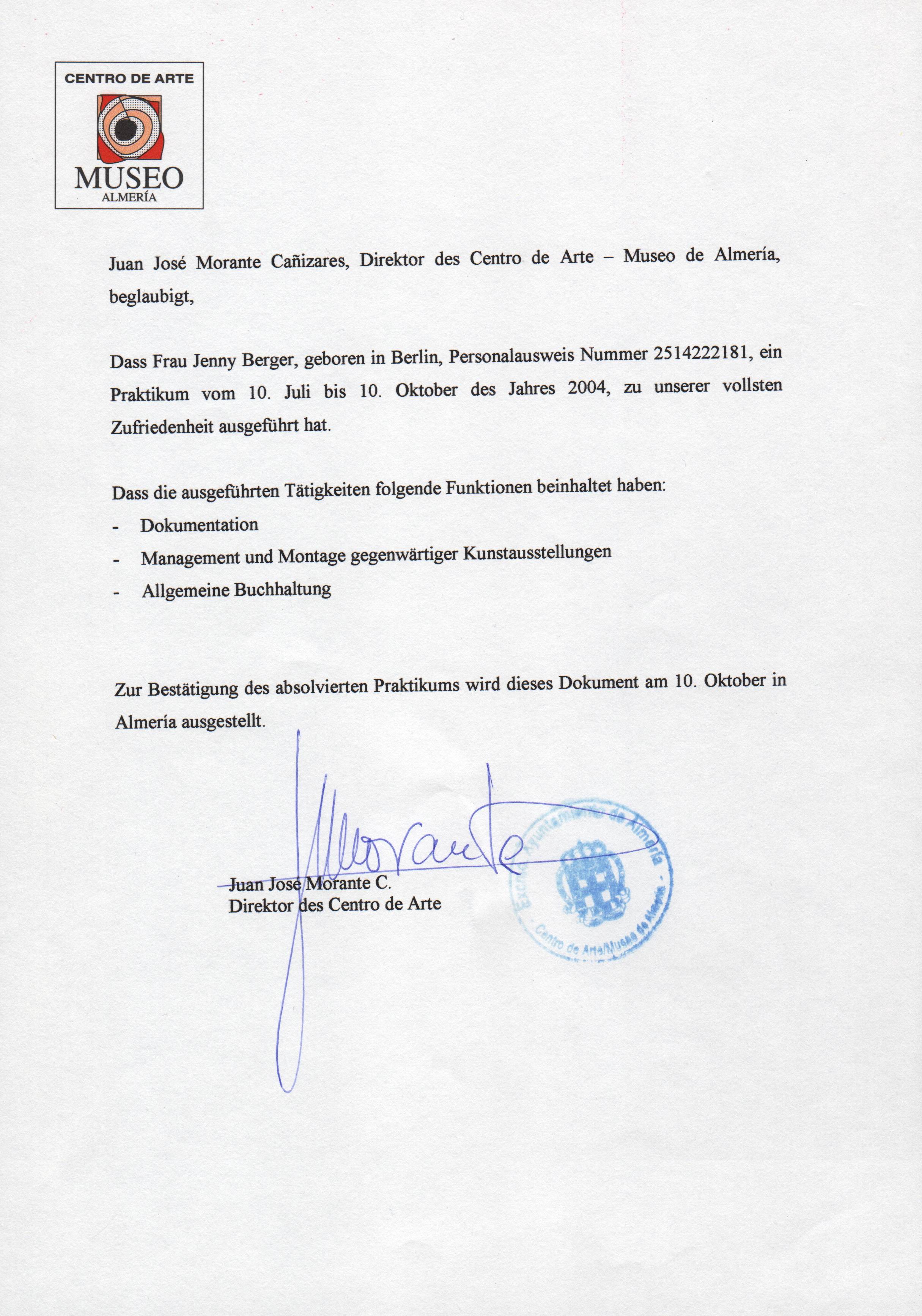 Außerdem finden Sie hier einen Nachweis über das in Spanien absolvierte Praktikum in deutscher oder spanischer Sprache.